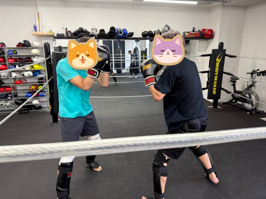 50代の会員さん同士のマススパーリングはお互い一歩も譲らない白熱した闘いで、いいマススパーリングでした🔥