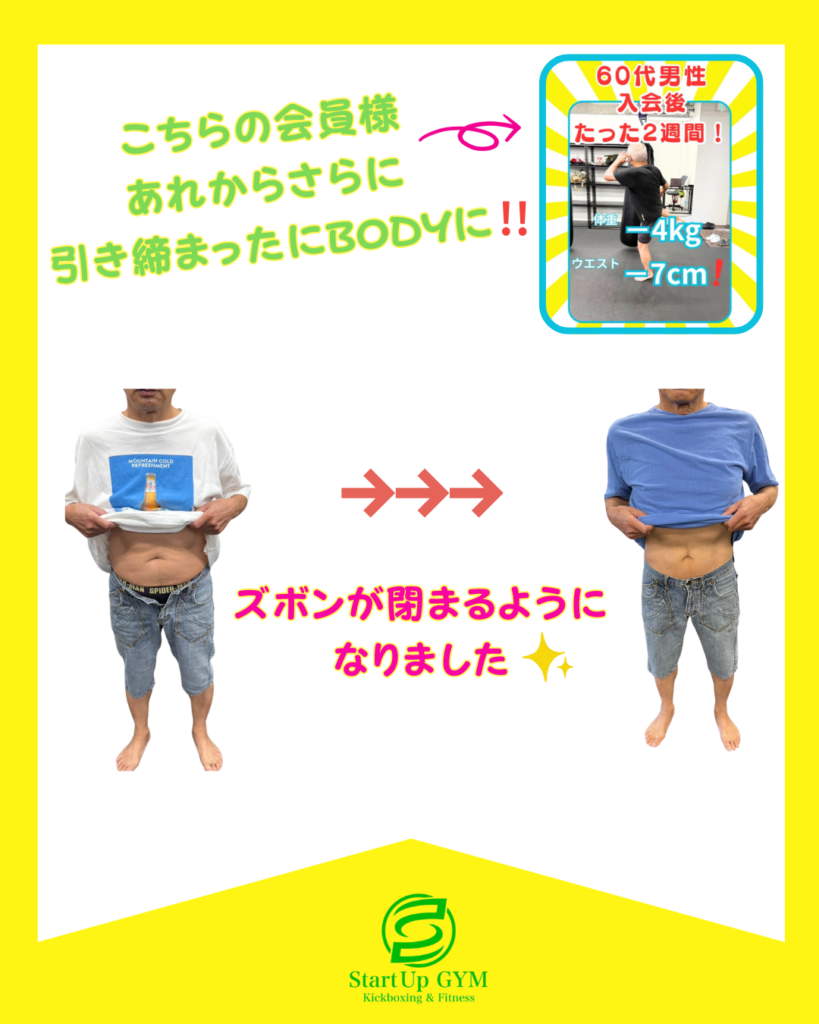 たった2週間で −4kg、ウエスト −7cm を達成された60代男性の会員様。